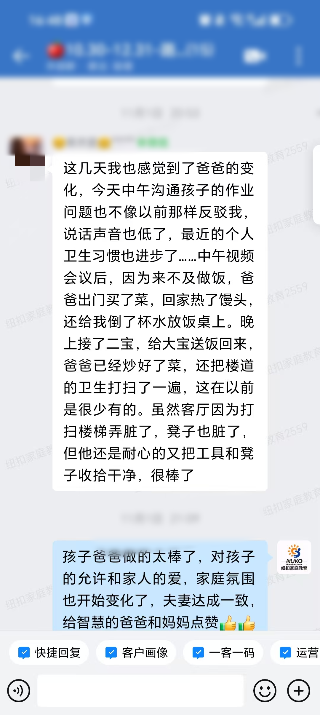 孩子妈妈向咨询师反馈