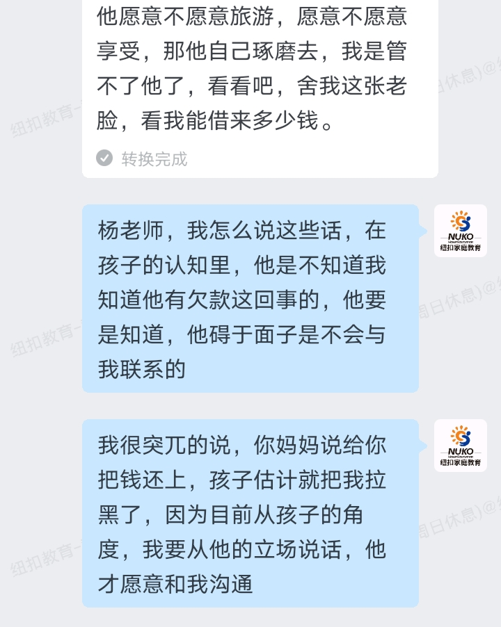 在能和儿子正常沟通之后,我把儿子拉进了咨询群,由咨询师和他正面对接。