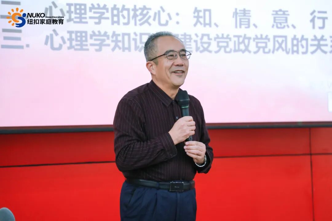 作为纽扣家庭教育集团特聘专家,黄杰教授创新性地将“知、情、意、行”心理学理论模型与党政干部素养提升相结合。在"知"的层面,黄杰教授强调了认知深化对党政党风建设的重要性,指出党员干部需要不断加强对党的理论、路线、方针、政策的理解和把握。在"情"的维度,他探讨了培养对党的忠诚和对人民的热爱的情感基础,认为这是工作的动力源泉。在"意"的方面,黄杰教授着重讲解了意志品质的锻炼,包括坚定信念、顽强毅力和自律精神。最后在"行"的层面,他强调将理论知识转化为实际行动,真正做到全心全意为人民服务。