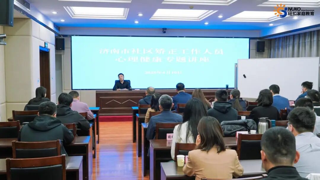 讲座开场,济南市司法局社区矫正处副处长纪鹏发表讲话。他强调,社区矫正工作对于维护社会公平正义、促进社会和谐稳定至关重要。基层执法人员肩负着繁重的工作任务,长期处于高强度的工作状态,面临着巨大的心理压力,迫切需要专业的心理疏导。纽扣家庭教育集团作为济南市知名的心理咨询机构,在业内拥有极高的认可度。集团不仅与检察机关建立了深度合作关系,还与长清司法局携手共建了社区矫正对象心理教育基地。其汇聚了业内众多一线专家教授,为心理矫治工作提供了坚实的专业支撑。纪鹏副处长表示,相信纽扣家庭教育集团凭借专业的团队和丰富的经验,必将为本次培训带来极具价值的指导。