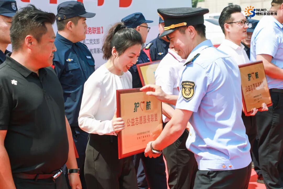 纽扣家庭教育集团党支部书记张赫文领取“公益志愿服务联盟”荣誉牌匾