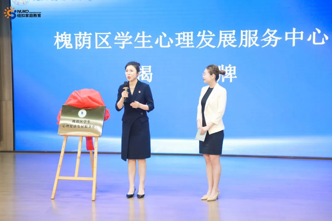 在与会嘉宾的共同见证下,刘鹏副主任与张赫文一同为槐荫区学生心理发展服务中心揭牌。此次揭牌标志着槐荫区青少年心理健康服务迈入专业化、系统化的新阶段。服务中心将借助纽扣家庭教育集团的专业资源与区教体局的平台优势,为全区青少年提供心理咨询、危机干预、家庭教育指导等一站式服务。