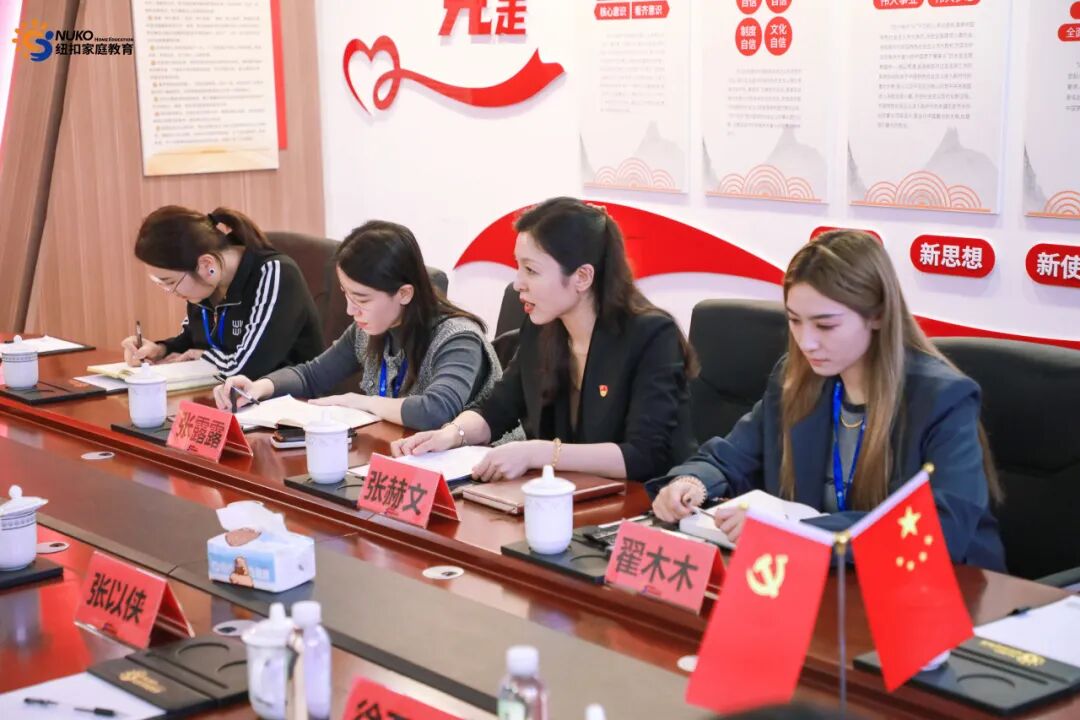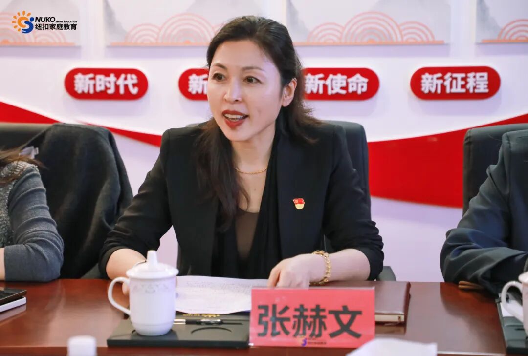 在随后举行的座谈会上,纽扣家庭教育集团党支部书记张赫文对区委党校一行的到来表示热烈欢迎,并详细介绍了集团党支部的基本情况、党建工作思路以及“红扣子”党建品牌的创建历程与内涵体系。