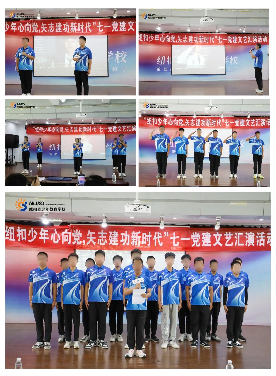 为培养学生爱党爱国的伟大情怀,营造良好的学校文化氛围,促进学生健康成长,7月1日,纽扣青少年教育学校以“纽扣少年心向党,矢志建功新时代”为主题,举办七一党建文艺汇演活动。
